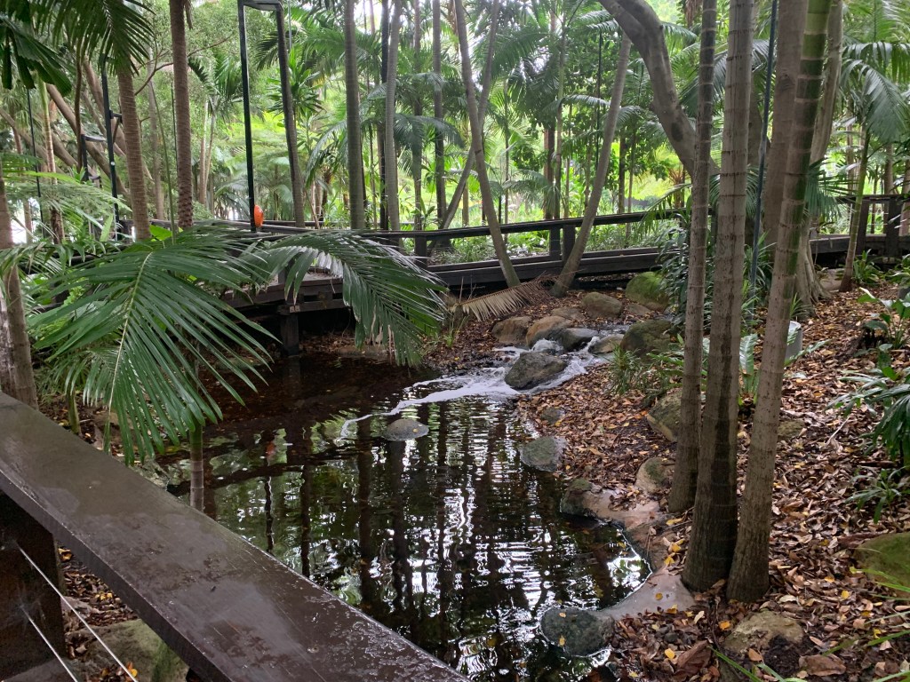 If it’s hot you can then go to the beach. Southbank beach has everything you expect on an Australian beach, except for waves and salt water. The first section is a standard pool, with a ramp and railing providing easy access for those who need it. The middle section is the sandy beach and is divided into shallow and deep sections. Then there is the section for little kids: wading pools and shallow streams, water features that rain water down, or tip it from buckets, and gismos to allow kids to create dams or turn water wheels. All of these are patrolled by lifesavers, dressed in yellow and red, from 7am to midnight. After that you’re on your own.