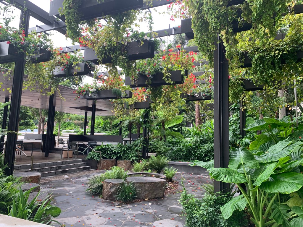 Snaking its way through Southbank is the arbor covered with bougainvillea, a beautiful plant with vicious thorns that creates a colourful shady path the length of the parklands. This will take you to other picnic areas, including one on its own island. Don’t be startled by the water dragons sunning themselves on the rocks by the water; they are harmless and will disappear into the water if you get too close.