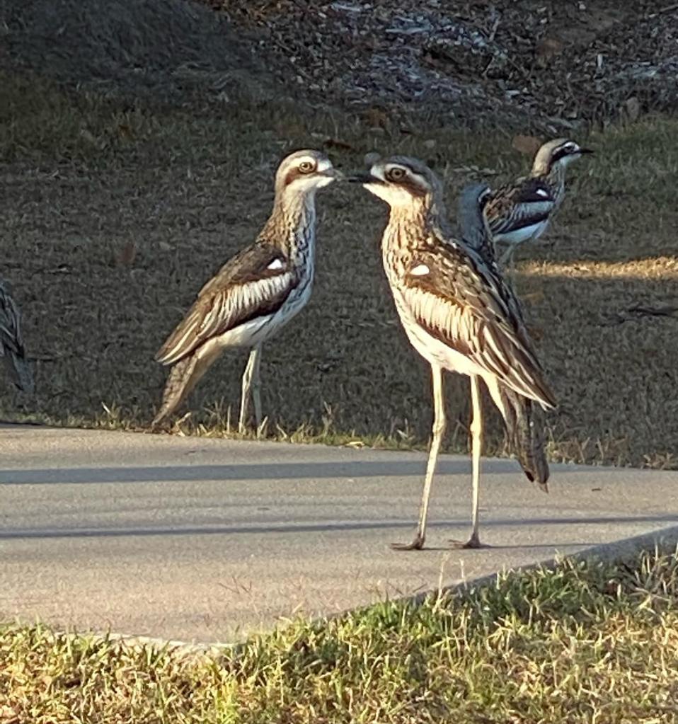 If it’s Spring, watch out for the Bush Stone Curlews. If you get near their nest or offspring, these long-legged birds will lower their heads and start goose-stepping in your direction. They won’t do you any harm, but their mournful cry and the creepy way they stare at you will psych you out. Also watch out for the Plovers, who make their nest on the ground and will dive bomb you if you get near it. Oh and of course the Magpies; they will swoop if you happen to get near the tree where they are nesting, which you will. Just wear a hat and sunnies, which is advisable in Queensland wherever you are. Harmless but probably more annoying are the Ibises, otherwise known as Bin Chickens. They’ll hang around wanting your food. Don’t feed them or they’ll just become more annoying. In the warmer months it is also possible you will also see the odd snake, but don’t let that worry you.